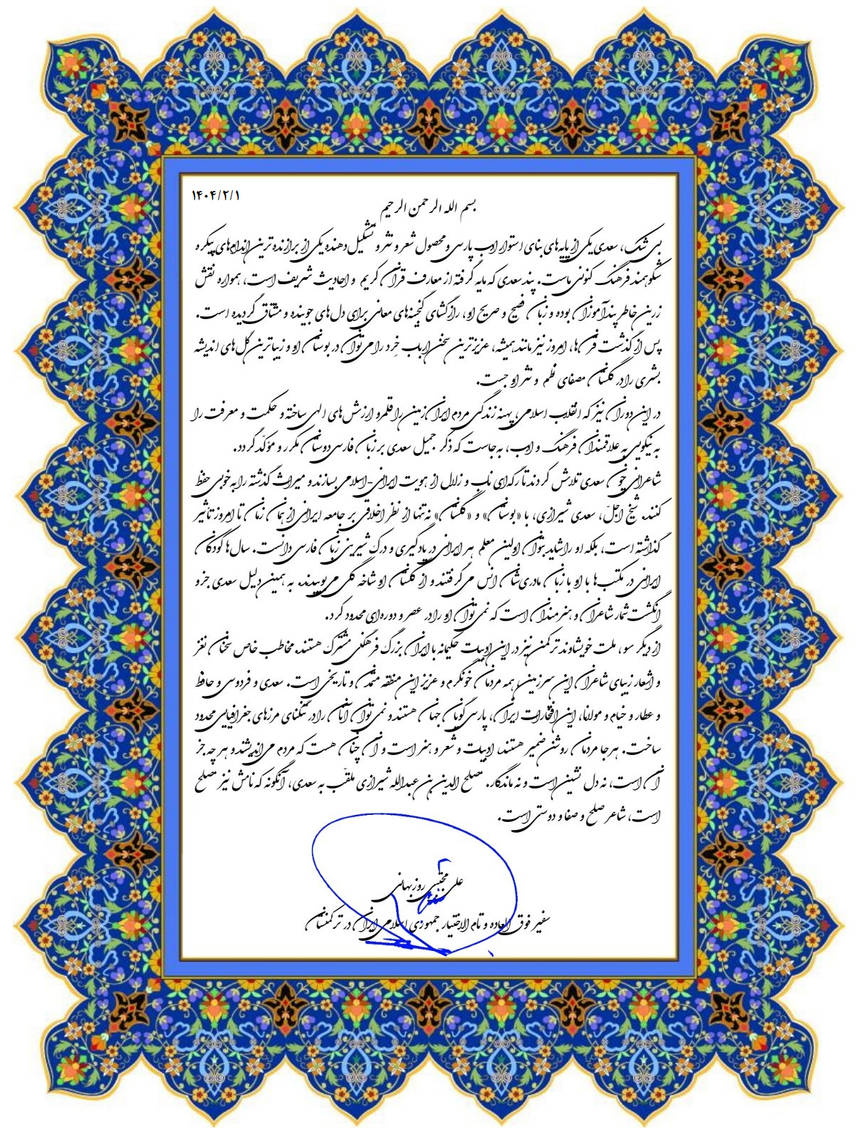 The message of the Ambassador of the Islamic Republic of Iran to Turkmenistan to all those interested in Persian culture and literature