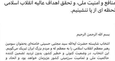 اعلام بیعت وزارت امور خارجه و همه دیپلماتهای جمهوری اسلامی ایران در داخل و خارج از کشور، با سومین رهبری معظم انقلاب اسلامی، حضرت آیت الله سید مجتبی حسینی خامنهای (دام ظله)
