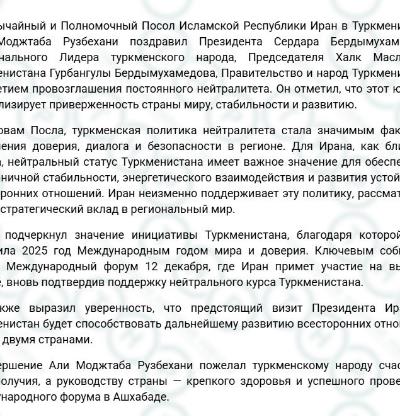 Встеча посла Ирана с Министром энергетики Туркменистана