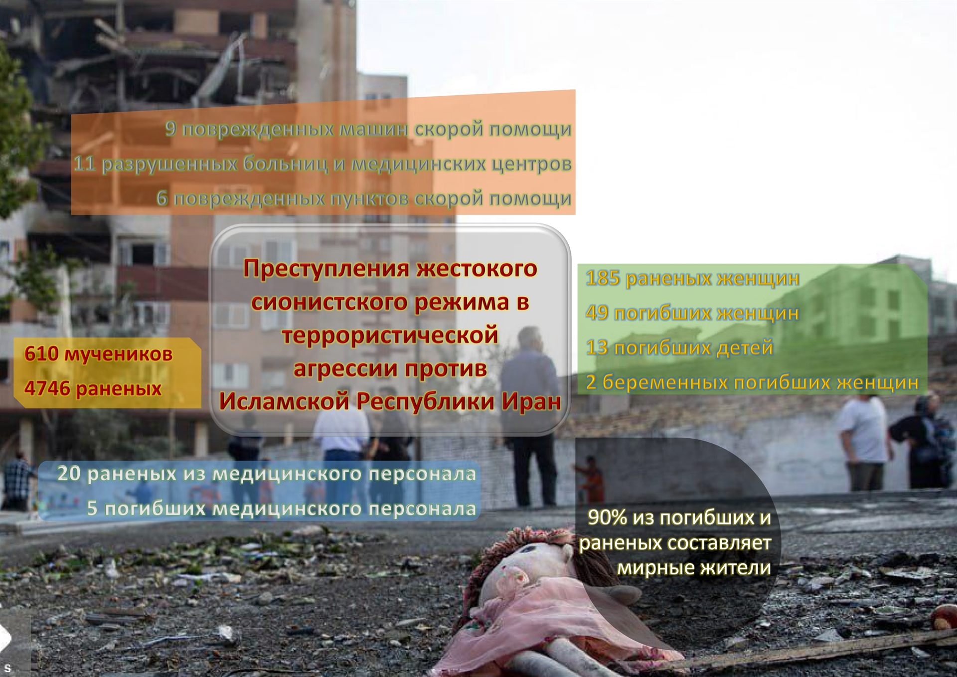 Преступления жестокого сионистского режима в террористической агрессии против Исламской Республики Иран.