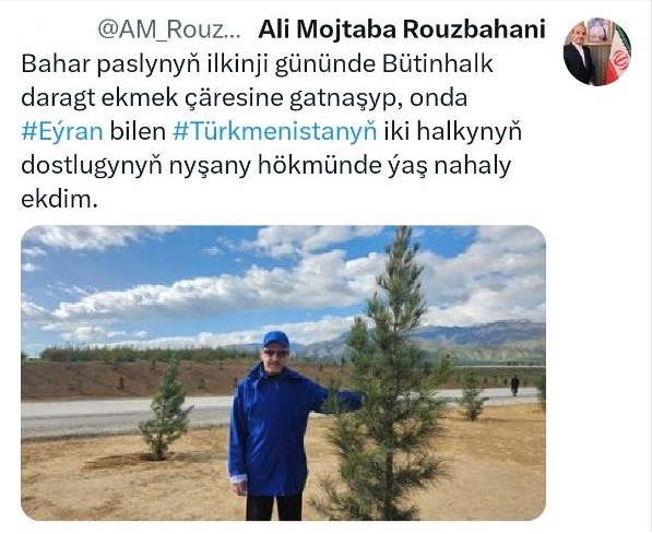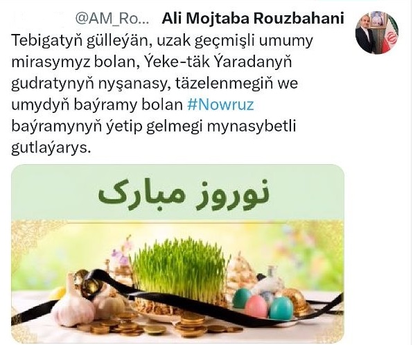 Eýran Yslam Respublikasynyň Türkmenistandaky ilçisi j-p Ali Mojtäba Ruzbehaniniň ýüzlenmesi