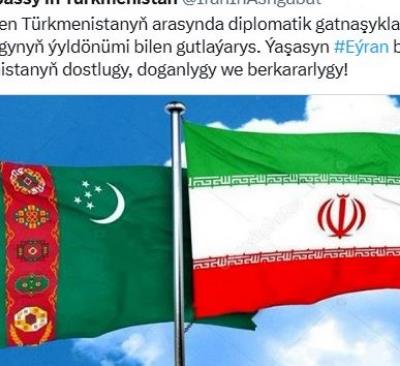 Eýran bilen Türkmenistanyň arasynda diplomatik gatnaşyklarynyň ýola goýulmagynyň ýyldönümi bilen gutlaýarys