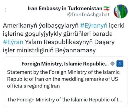 Amerikanyň ýolbaşçylaryň Eýranyň içerki işlerine goşulyjylykly gürrüňleri barada Eýran Yslam Respublikasynyň Daşary işler ministrliginiň Beýannamasy