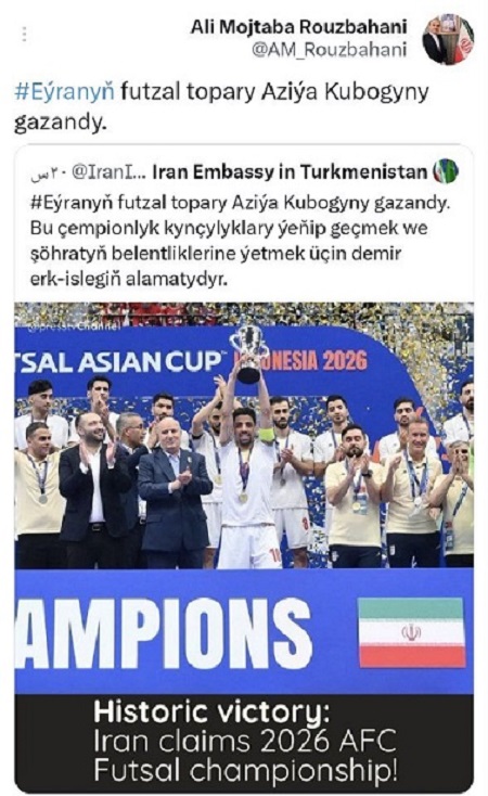 Eýranyň futzal topary Aziýa Kubogyny gazandy.